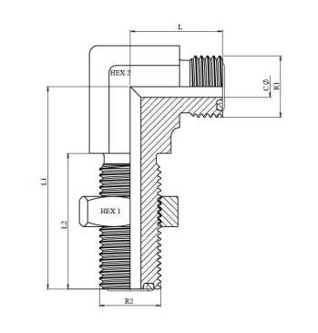 ORFS schotkoppeling haaks 90° 11/16"-16h