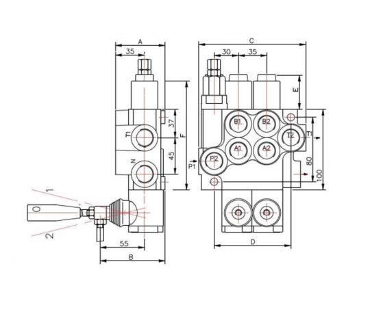 ✓ 4/3 Stuurventiel ✓ Handbediend ✓ 1 sectie ✓ 40 L/min ✓ enkelwerkend