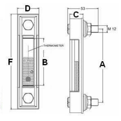 Peilglas met thermometer - aansluiting M10 lengte 76 mm