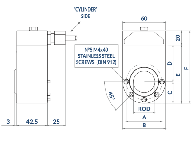 Deze positie omvormer kan worden toegepast op hydraulische cilinders met een stang van 25 mm om de continue positie van de stang langs zijn lineaire mechanische slag te detecteren. Dit product kan worden geïnstalleerd via een externe houder aan het einde van de cilinder met schroeven of magneten.