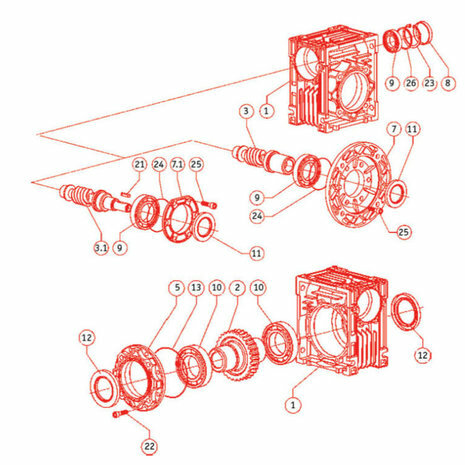 Reductiekast wormwiel MSF 063 - 25 vertraging