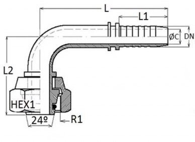 RVS 1/4 DN perskoppeling haaks 90° 6L M12x1,5 met o-ring