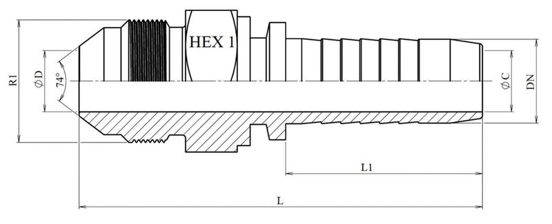 | Afmeting R1 | 1" 5/8 12h UNF |