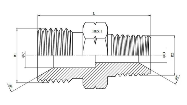 ✓ RVS adapter 1/4" BSP -1/2" NPT male ✓ 60º binnen conus