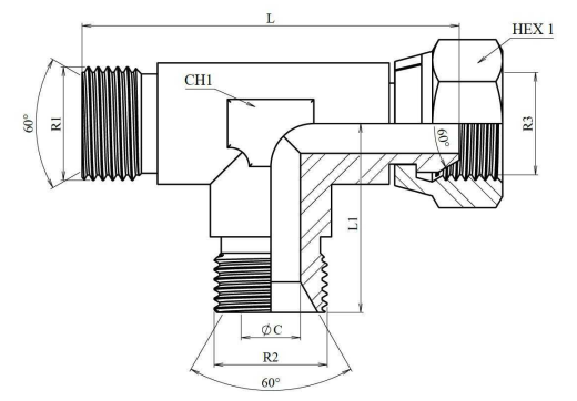 RVS instelbare T-adapter 1/4" BSP (L-uitvoering)