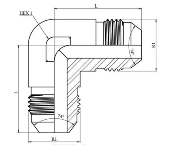 RVS kniekoppeling 90º JIC 1" 5/8 12h UNF