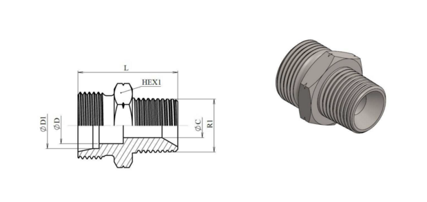 ✓ RVS Adapter 1/8" NPT (Metrisch) L - male ✓ Metrisch ✓ Male ✓ 315 bar