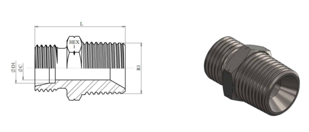 ✓ RVS NPT 3/8" - 10S (M18x1,5) male inschroefkoppeling ✓ Metrisch ✓ Male ✓ 630 bar