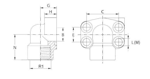 RVS SAE 90° schroefdraad flens (female) 1/2" BSP, 1/2 inch, 6000 PSI
