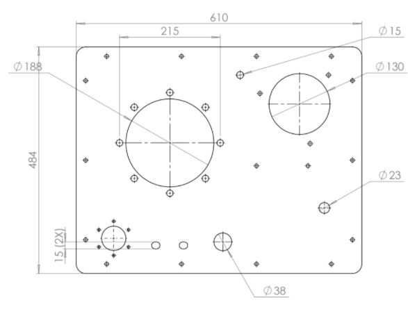 Tankdeksel voor 130 liter tank motorflens met uitsparing 250mm lantaarnstuk & vuldop & retourfilter