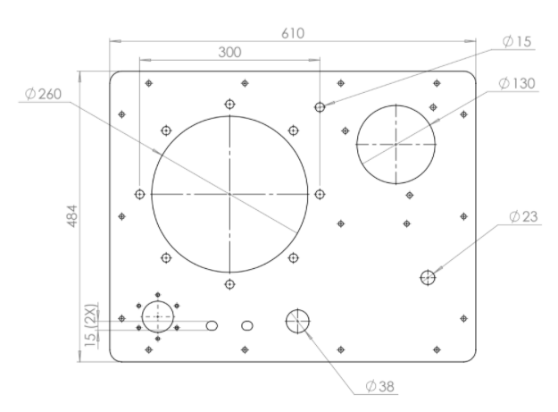 Tankdeksel voor 130 liter tank motorflens met uitsparing 350mm lantaarnstuk & vuldop & retourfilter