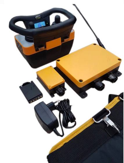 Teleradio zender / ontvanger set met accessoires om proportionele hydrauliek toepassingen te kunnen bedienen. Met deze hoogwaardige en industriële set is het mogelijk om eenvoudig en proportioneel rijwielmotoren en andere/overige actuatoren en functies te bedienen welke meer precisie verlangen dan de besturing d.m.v. standaard hydrauliekventielen.