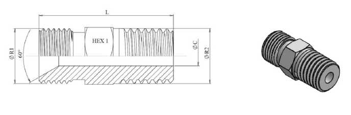 Verloopadapter 3/4" BSP - 3/4" BSPT male-male